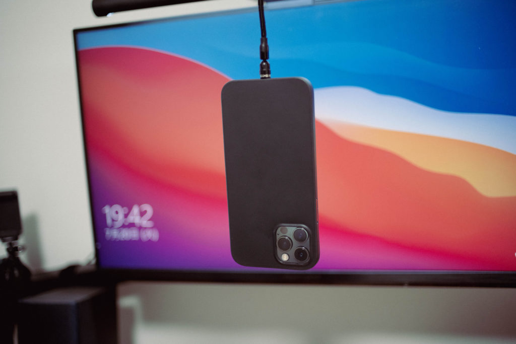 また、マグネットも強力でこのようにiPhoneをぶら下げても外れることはありません。
