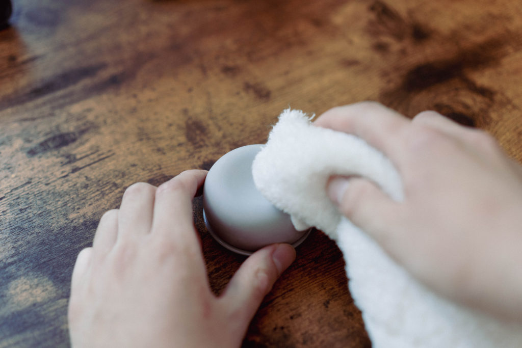 アロマストーンであれば、汚れが気になったタイミングで乾いた布でさっと拭くだけでOKです。