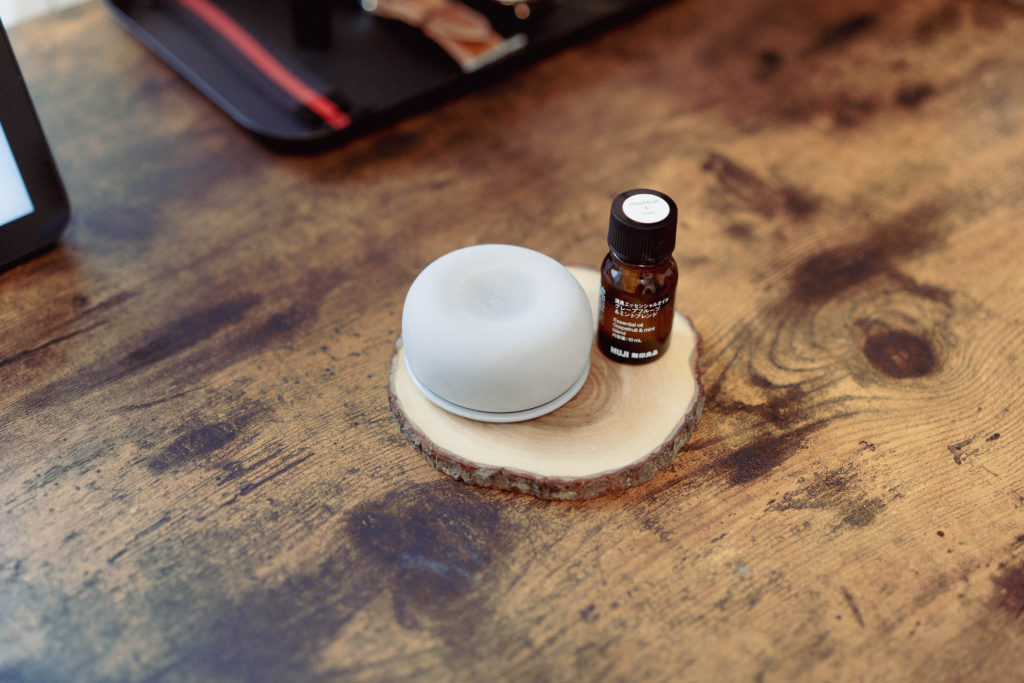 無印良品の「アロマストーン」と「消臭エッセンシャルオイル」で自室が素敵な香りになり、在宅勤務にもより集中できるようになりました。