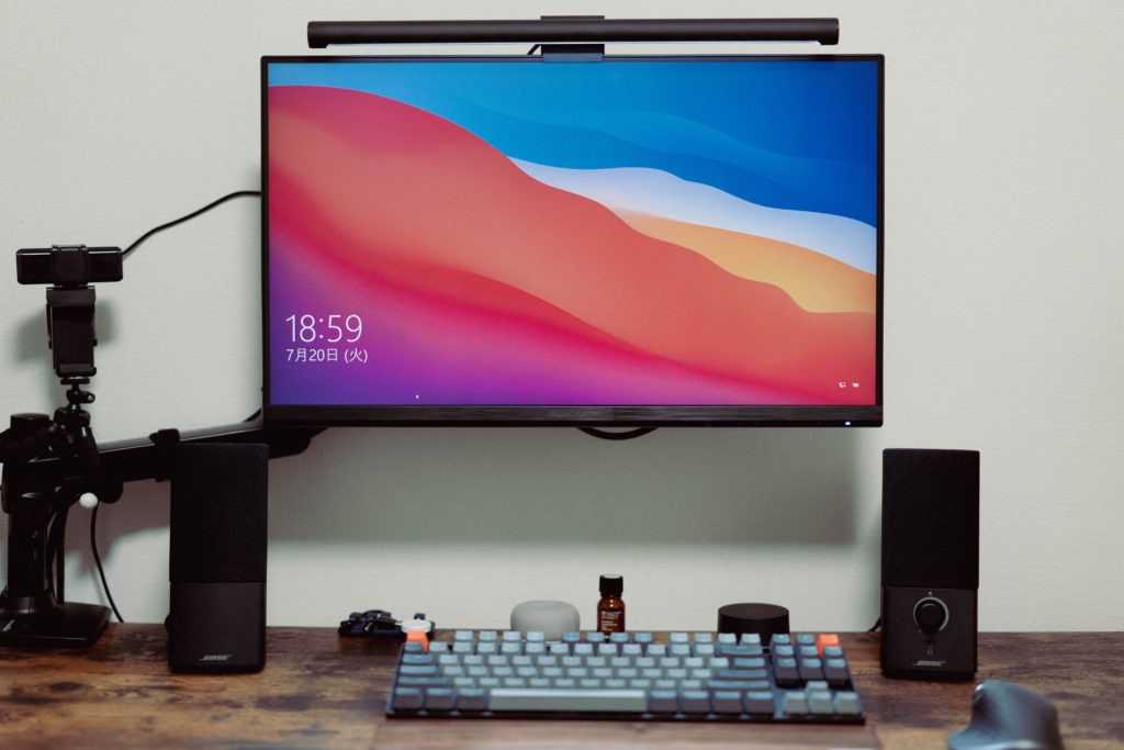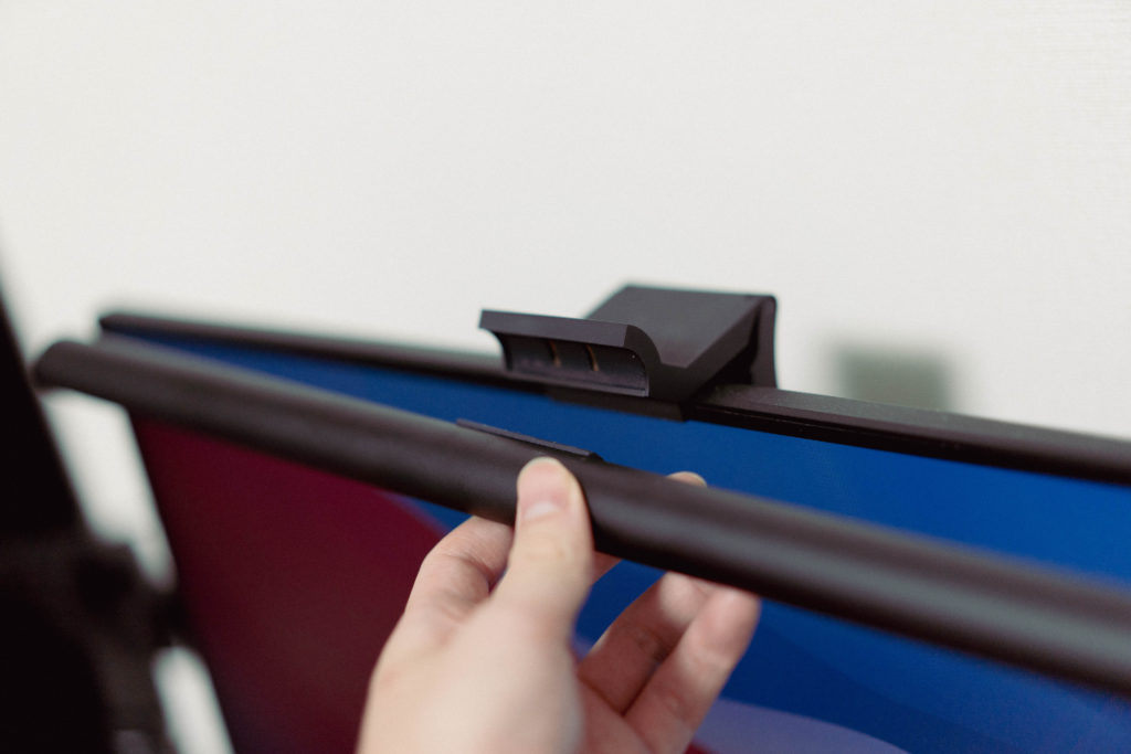 モニター上にWebカメラを設置しているのですが、ちょうどモニターライトと位置が被るので注意です。