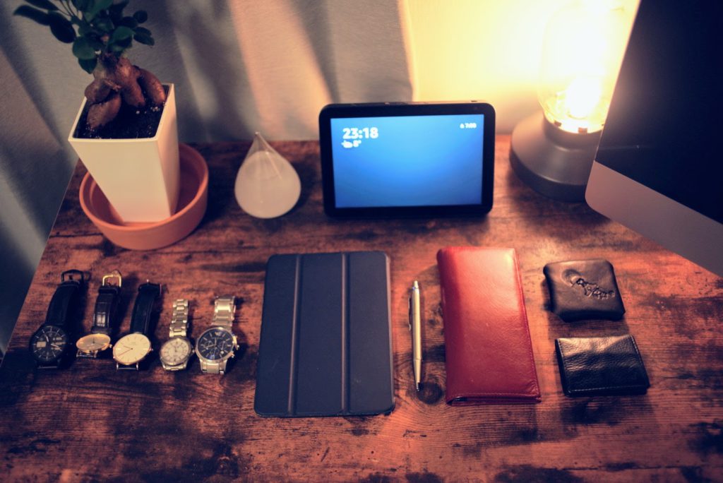 時計や替えバンド、ボールペンなどは机に整然と並べて雑然としないようにしています。