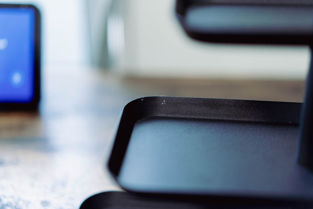 トレー全体もある程度の重さがあり滑り止めも付いているため、机が揺れても動く心配がありません。