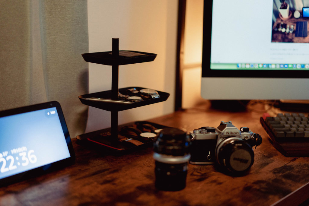 机の小物整理をおしゃれに解決。山崎実業の「アクセサリー 3段 トレー タワー」